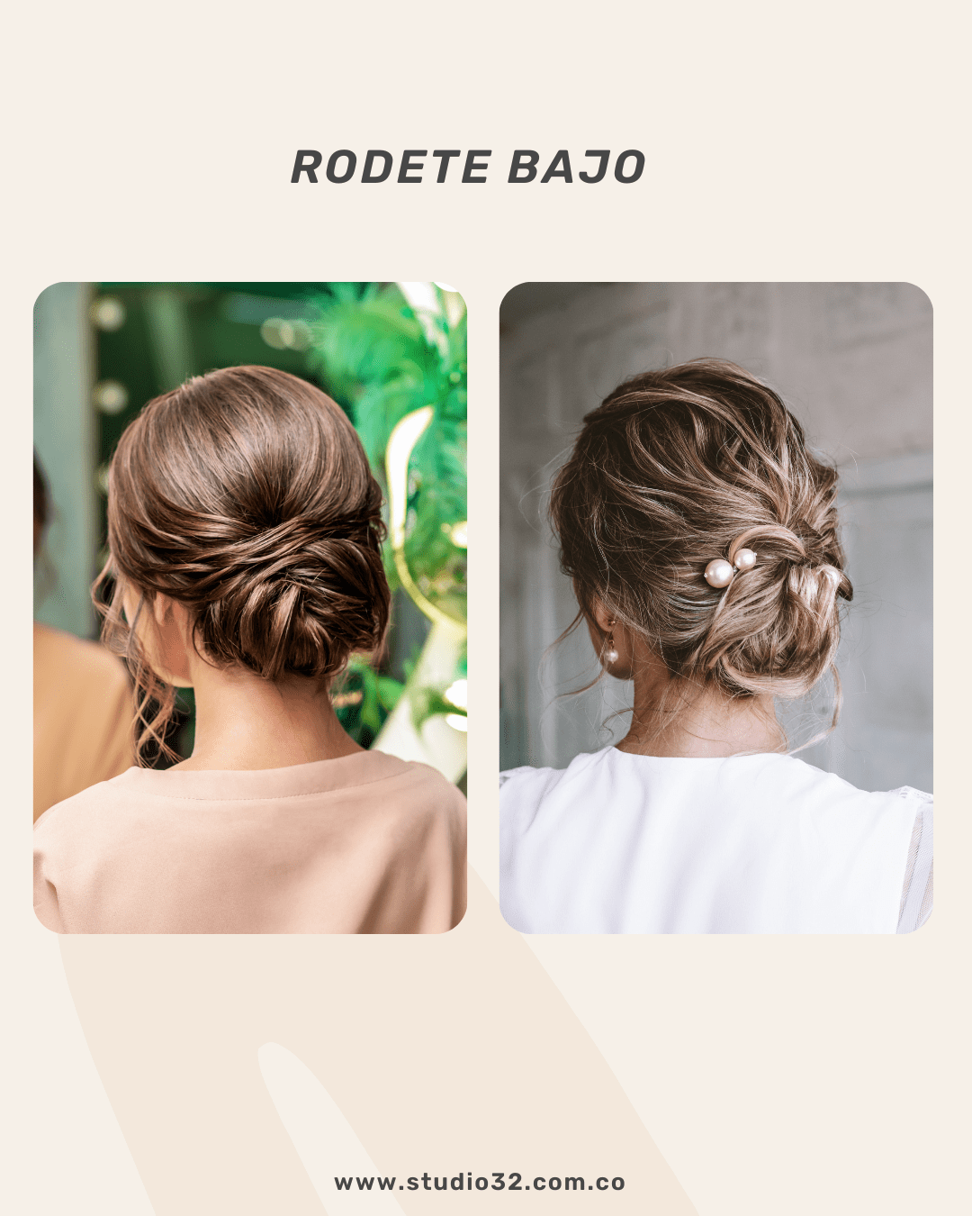 Peinado clásico y sofisticado con varias ventajas funcionales: una de ellas, tener el cabello bajo control y fuera del rostro lo que es perfecto para un día con bastantes actividades; a pesar de esto se adapta a diferentes ocasiones por lo que se puede optar por este mismo estilo, pero mucho más pulido y elegante para eventos, por otro lado, puede crear un rodete bajo “más suelto y despeinado” para días casuales.