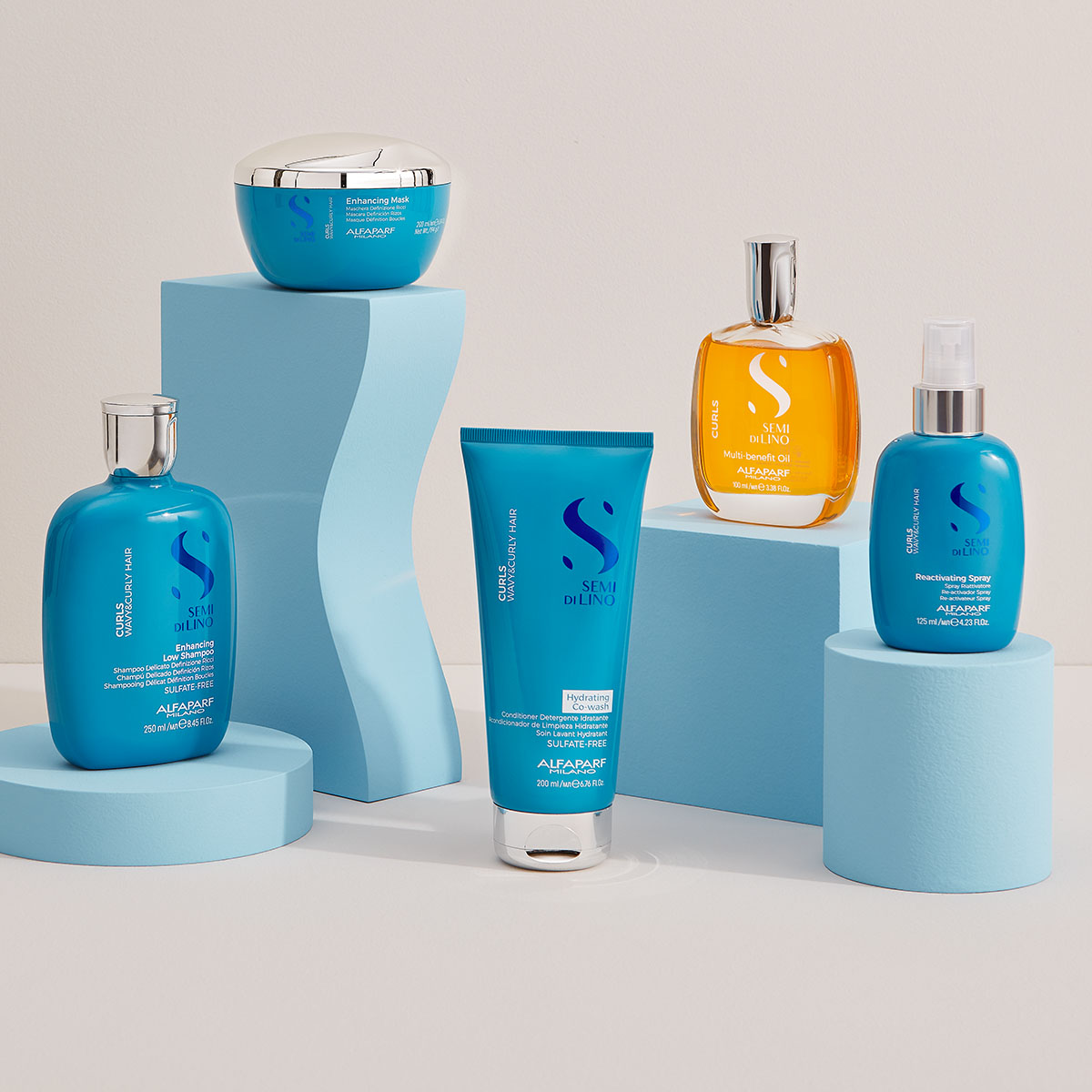 La línea Semi de Lino que exalta la textura de ondas y rizos, hidratar el cabello y mantiene su belleza natural. Incluye: Low Shampoo + Acondicionador + Mask + Oil + Crema para Peinar.